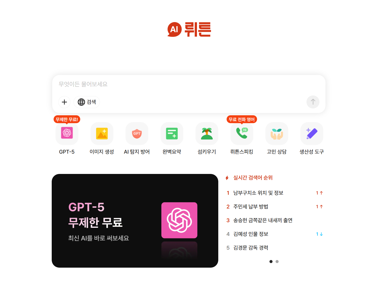 원래 지피티5는 유료로 사용해야하는데, 뤼튼에선 무료로 사용할 수 있어요.