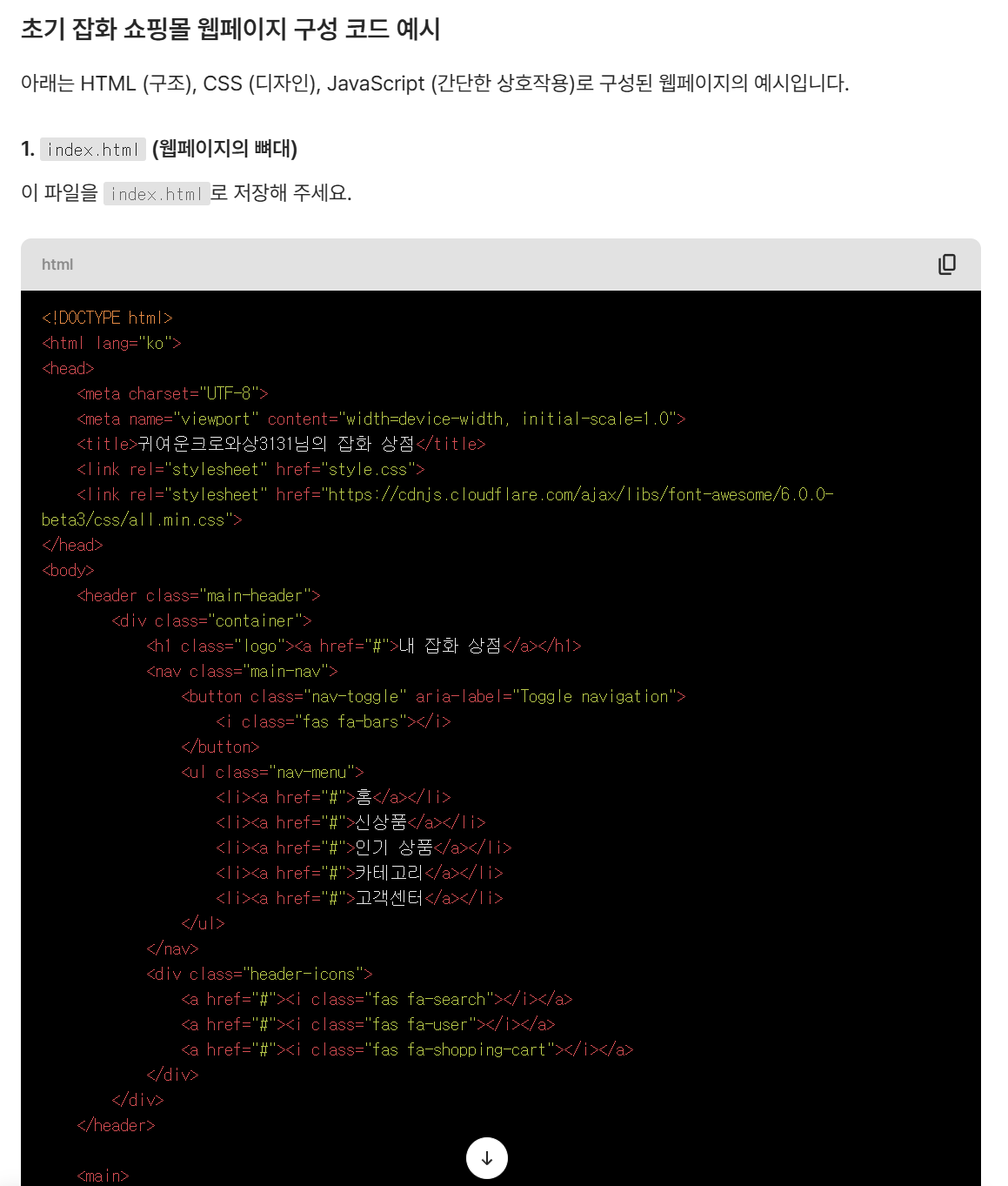 3.프로그램 복사해서 메모장에 붙여넣고 index.html로 저장하기